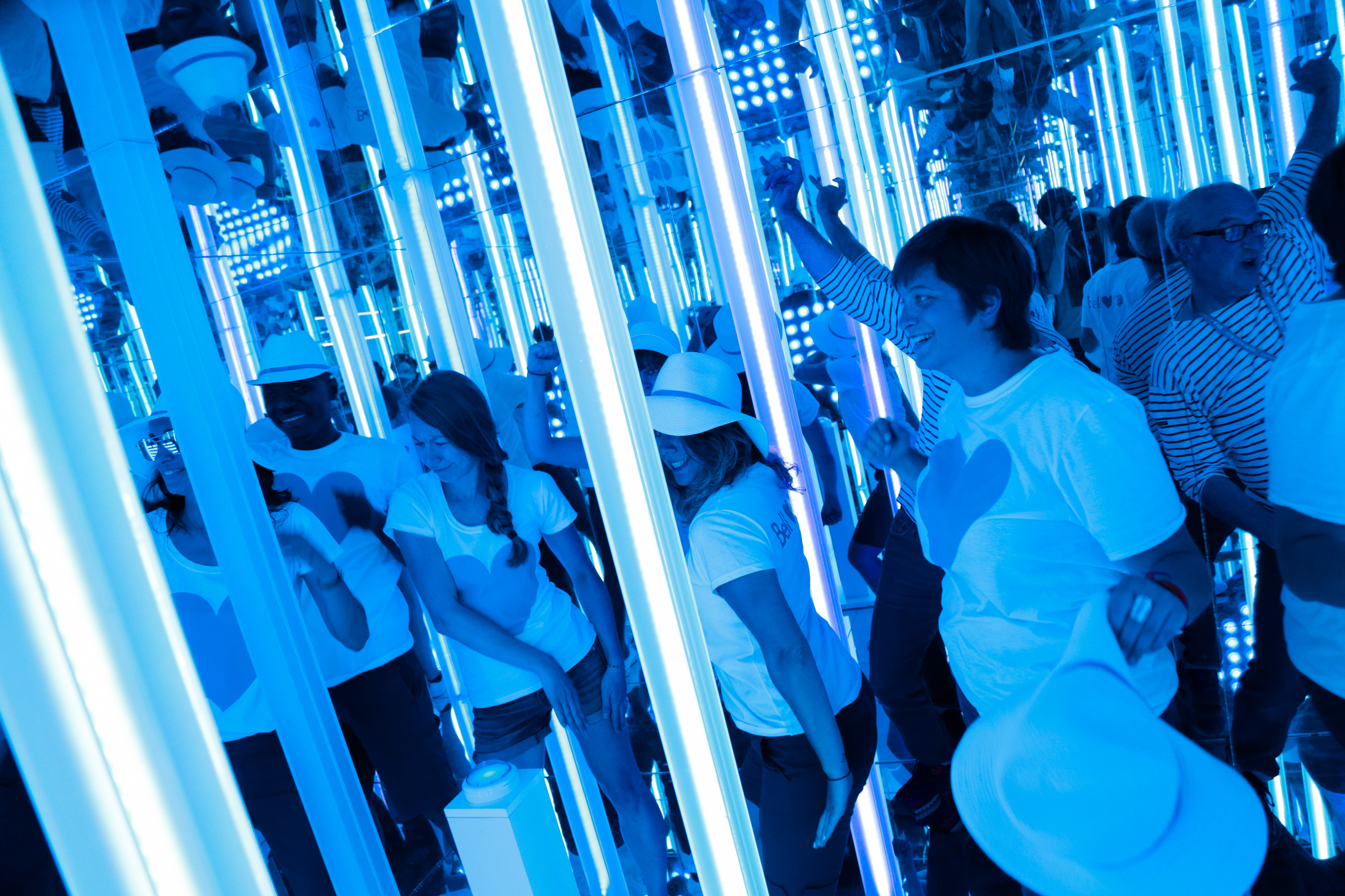 On the next floor, an infinity room allowed participants to create a mesmerizing souvenir of their experience. In the middle of the room, a mysterious blue button was triggering a musical show. The lights surrounding participants were magnified by the mirrors creating a magical effect. The participants' dance moves were recorded as a gif and also printed for their greatest pleasure.